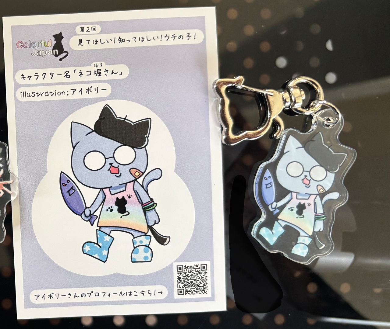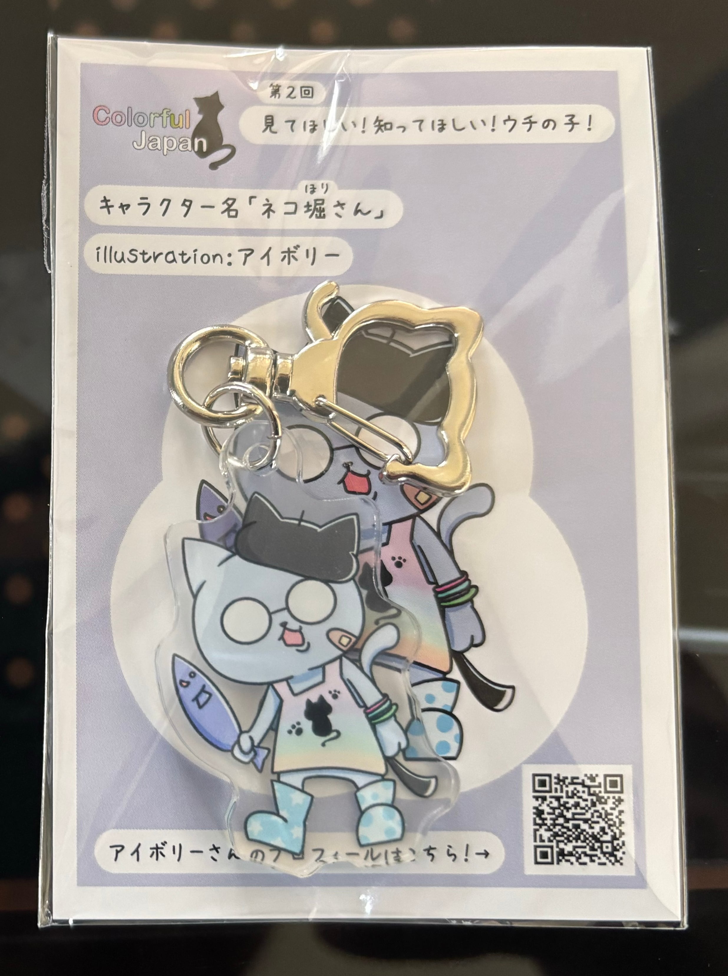 月刊カラフル企画、第二回「知ってほしい!見てほしい!ウチの子!!」に登場したネコ堀さんがアクリルキーホルダーになりました。